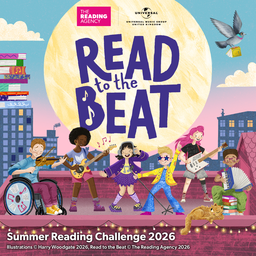 The 2026 Summer Reading Challenge is Read to the Beat, delivered by The Reading Agency in partnership with public libraries and powered by Universal Music Group UK. The theme inspires children to explore the connection between stories and songs, discovering how reading and music both ignite imagination and creativity. This year’s Challenge is brought to life with illustrations by award-winning author and illustrator, Harry Woodgate, and will launch on 20 June in Scotland and 4 July in England and Wales.